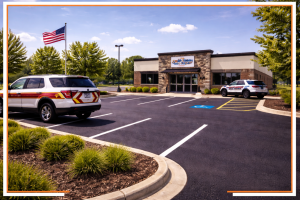 Fresh asphalt parking lot for first responder owned business in Illinois
